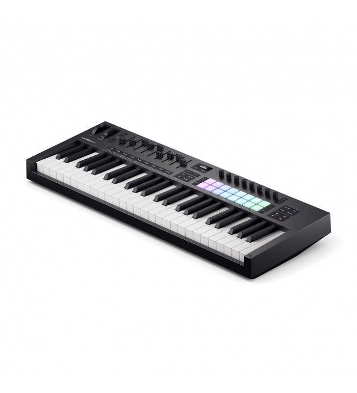 De Novation Launchkey 49 is een krachtige DAW-controller met een premium semi-gewogen toetsenbord, acht continue encoders, negen faders en 16 aanslaggevoelige pads voor het bespelen van drums, instrumenten en het starten van clips.