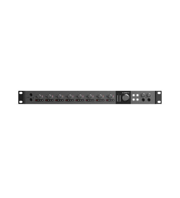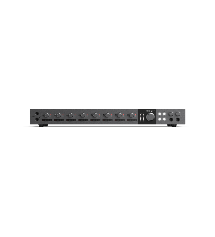 De acht Audient Console microfoonvoorversterkers van de iD48 zorgen voor een heldere, accurate en brongetrouwe vertaling van je audio.