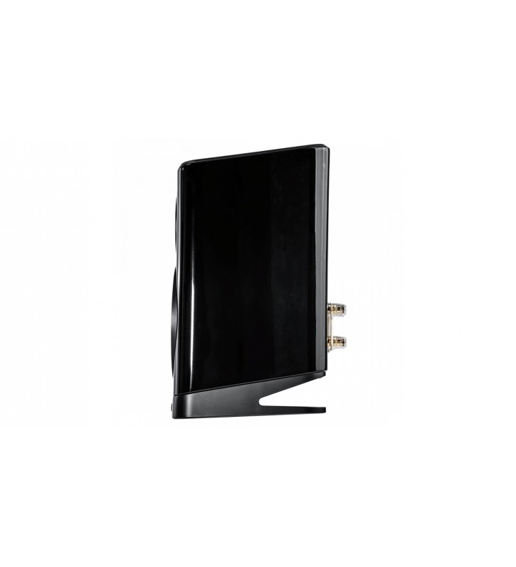 Het gebogen front minimaliseert reflecties van geluidsgolven, en de dubbel gewelfde downfiring basreflexpoort is naadloos geïntegreerd in de aluminium sokkel voor zowel functionaliteit als esthetiek.