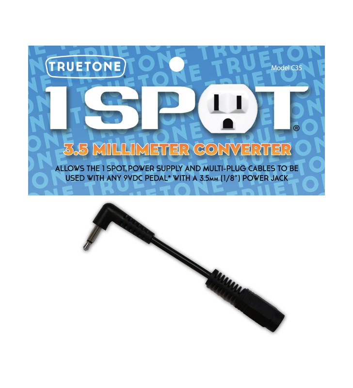 C35 - Maakt het mogelijk 1 SPOT-voedingen en multi-plug-kabels te gebruiken met elk 9VDC-pedaal met een 3,5 mm (1/8 ") stroomaansluiting.