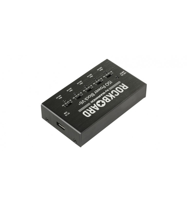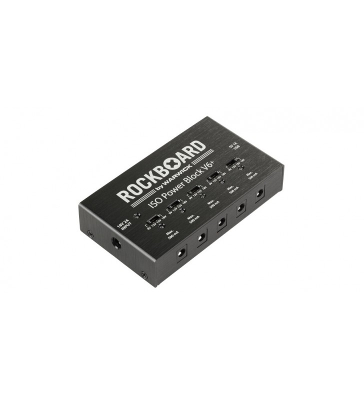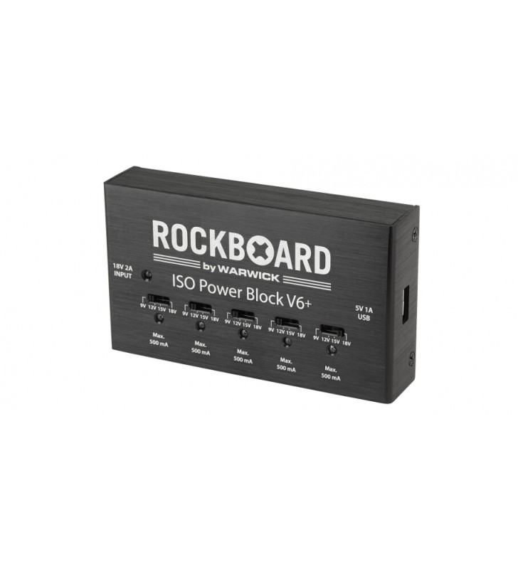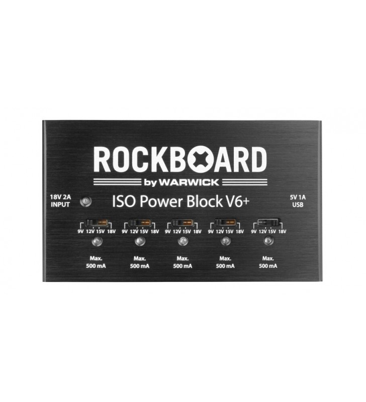 De RockBoard ISO Power Block V10 is een multi stroomvooziening voor effectpedalen dat 10 met transformators geïsoleerde en hoog gefilterde stroompunten biedt - 8 x 9 volt (geïsoleerd) met een max. uitgangsvermogen van 150 mA elk, en 2 x 18 volt (geïsoleerd) met een max. uitgangsvermogen van 400 mA elk – voor het apart van stroom voorzien van tot op 10 effectpedalen tegelijk, zonder ruis. De geavanceerde filtertechnologie, gebruikt in elk van de uitgangen, voorkomt hogefrequentieruis. Door individuele kortsluitingsbescherming in iedere uitgang, zijn aangesloten pedalen beschermd tegen sluiting. Individuele LEDs voor elk van de 9V-uitgangen geven sluiting aan en alleen de bewuste uitgang wordt afgesloten, zodat je gegarandeerd en ongestoord de rest van je pedalen kunt gebruiken.