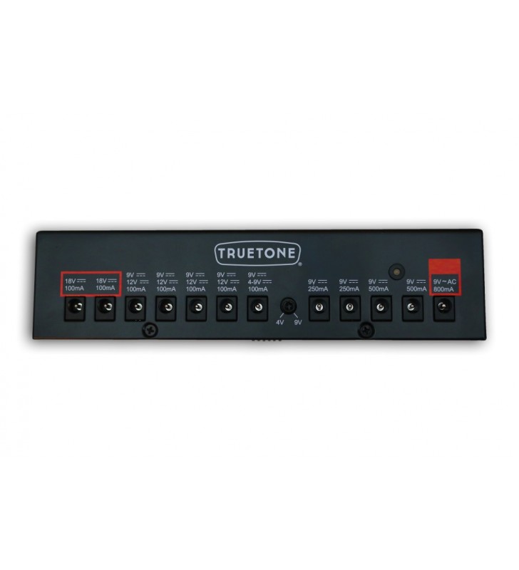 De RockBoard ISO Power Block V10 is een multi stroomvooziening voor effectpedalen dat 10 met transformators geïsoleerde en hoog gefilterde stroompunten biedt - 8 x 9 volt (geïsoleerd) met een max. uitgangsvermogen van 150 mA elk, en 2 x 18 volt (geïsoleerd) met een max. uitgangsvermogen van 400 mA elk – voor het apart van stroom voorzien van tot op 10 effectpedalen tegelijk, zonder ruis. De geavanceerde filtertechnologie, gebruikt in elk van de uitgangen, voorkomt hogefrequentieruis. Door individuele kortsluitingsbescherming in iedere uitgang, zijn aangesloten pedalen beschermd tegen sluiting. Individuele LEDs voor elk van de 9V-uitgangen geven sluiting aan en alleen de bewuste uitgang wordt afgesloten, zodat je gegarandeerd en ongestoord de rest van je pedalen kunt gebruiken.