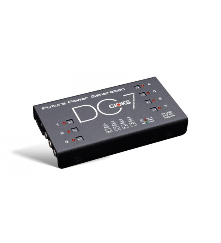 De baanbrekende DC7 heeft een profiel van slechts één inch (25,4 mm) en weegt 1,1 pond (500 gram) dankzij de pure 2-traps switch-mode technologie aan boord. Het profiel is dan wel laag, maar de vermogensspecificaties zijn dat zeker niet – de DC7 levert maximaal 48W en maakt het mogelijk om meerdere effecten met hoge stroomsterkte aan te sluiten, zoals apparaten van Effectrode, Line 6 en Eventide, zonder enig soort ruis.