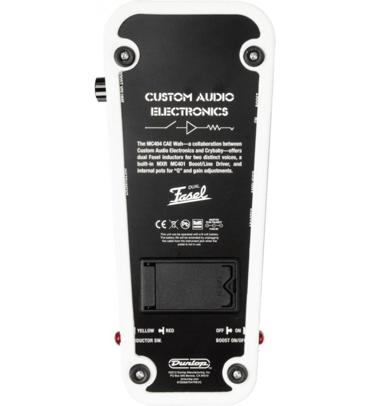 Dit pedaal kan worden gevoed door een 9-volt batterij, een Dunlop ECB003 9-volt adapter of de DC Brick™, Iso-Brick™ en Mini Iso-Brick™ voedingen (niet inbegrepen).